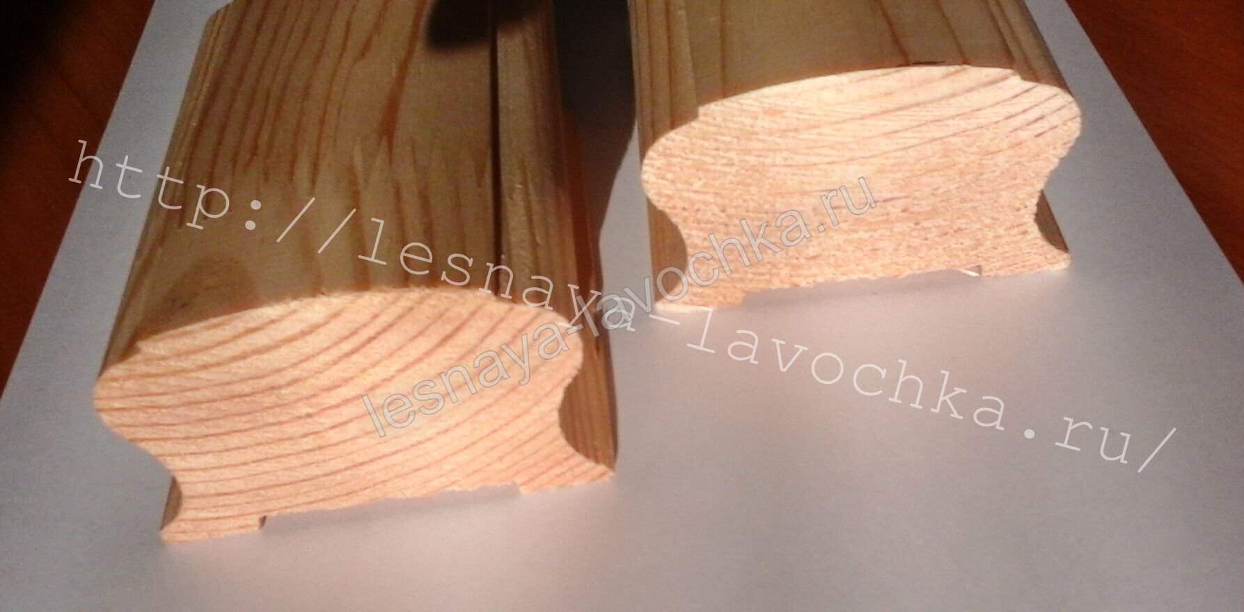 Деревяные поручни для лестничных ограждений имееют обтекаему удобную для обхвата рукой форму, снизу у перил имеется выборка под балясины или для металлической накладки, ширина выборки 45 мм.