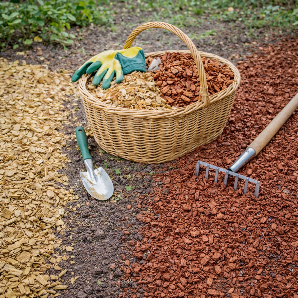 Обновлять мульчу и декоративную щепу лучше по состоянию покрытия: когда слой стал тонким, неровным или потерял аккуратный вид. Чаще всего достаточно выровнять старую отсыпку и подсыпать свежий материал.