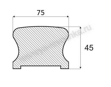 Размер перил: высота 45 мм., ширина 75 мм., выборка внизу 45 мм.