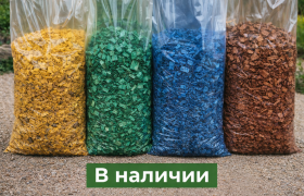 В наличии цветная декоративная щепа в мешках 60 л: жёлтая, зелёная, синяя и коричневая. Подходит для клумб, дорожек и декоративного оформления участка.